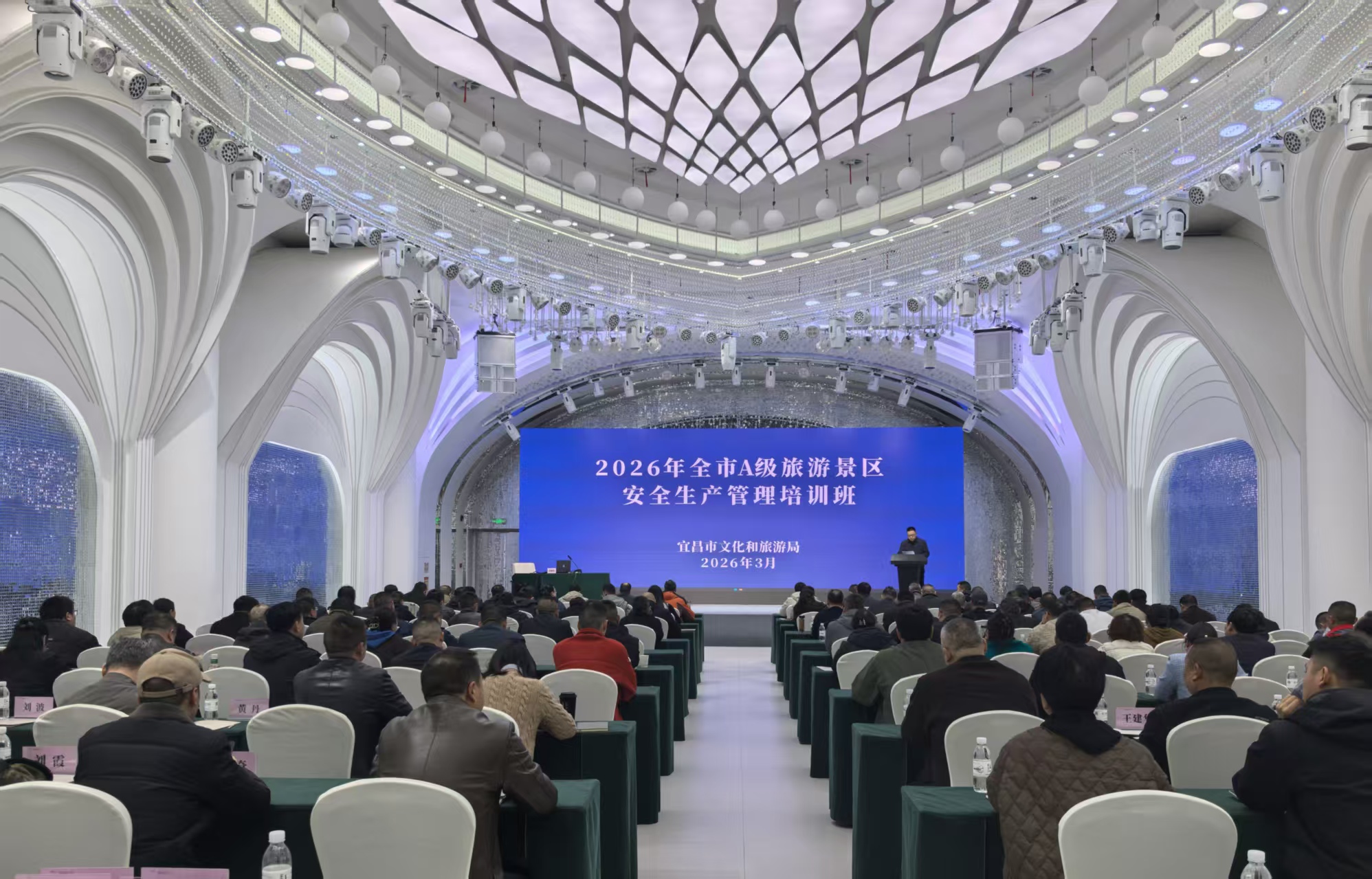 按照市安委办工作部署,为做好清明、五一、端午假期及汛期、暑期、旅游高峰期“三期叠加”时期的安全生产工作,3月26日至27日,市文化和旅游局举办2026年全市A级旅游景区安全生产管理培训,市文化和旅游局、市文化和旅游市场综合执法支队、各县市区文化和旅游局、宜昌高新区公共服务局有关负责同志,以及全市重点文旅企业、A级旅游景区、滑雪场所、漂流场所、等级民宿主要负责同志共130余人参加培训。