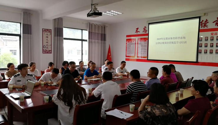 7月18日,宜都市文化和旅游局组织全市38家体育彩票销售网点负责人开展“以案促法 以例学规”普法学习培训,通过实际案例进行法律法规学习和规范经营培训。