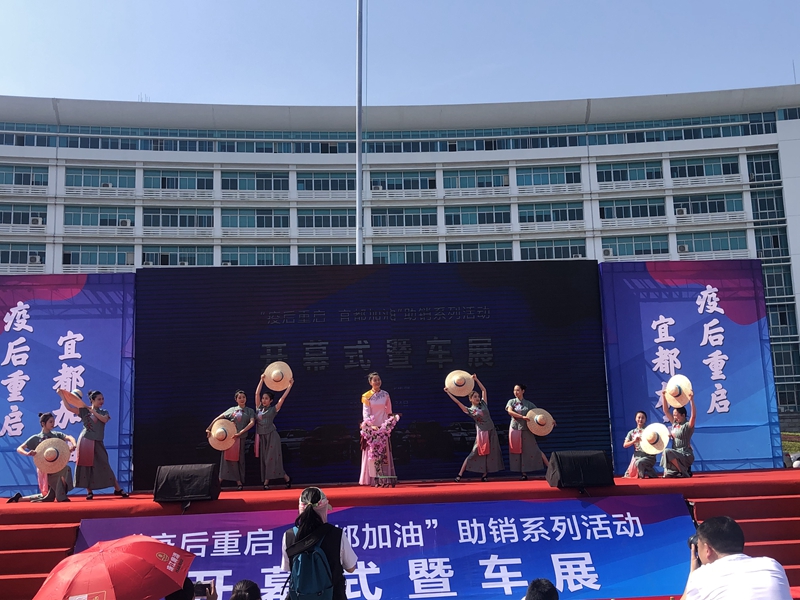 5月23日,以“疫后重启宜都加油”为主题的推动复工复产复商复市大型助销活动在宜都市人民广场举行。宜都市歌舞剧团参加开幕式,迎来疫情后的首场演出。本场演出有歌舞《我的祖国》《幸福来》,宜都梆鼓《乖媳妇》和宜都楠管《大山情》等6个节目。阔别舞台四个多月的演员们热情不减、技艺不退,激情满满的演出赢得观众的阵阵掌声,为本次助销活动聚集了人气,为宜都的经济建设贡献了文艺工作者的力量。