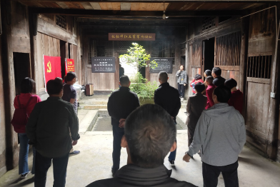 织党员干部到枝柘坪村参观红三军军部旧址,瞻仰革命遗迹。