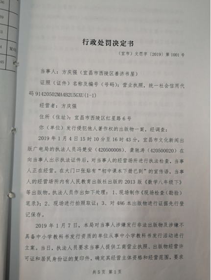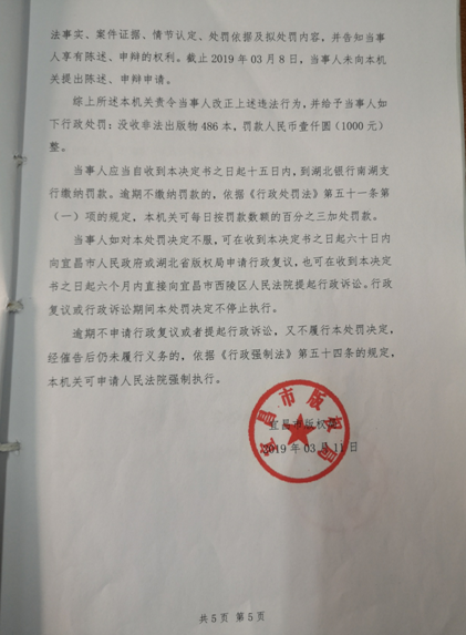 宜昌市文化和旅游局行政处罚决定书(宜市)文罚字〔2019〕第1001号