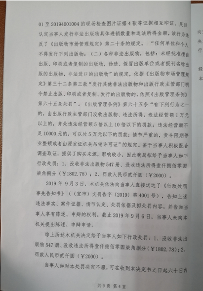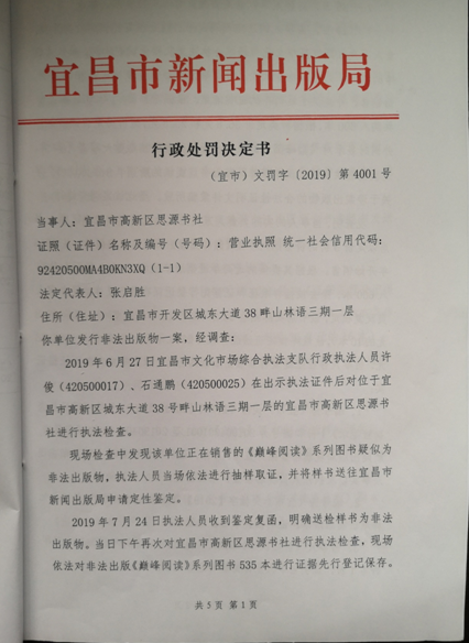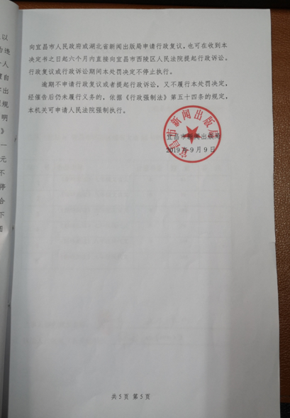 宜昌市文化和旅游局行政处罚决定书(宜市)文罚字〔2019〕第4001号