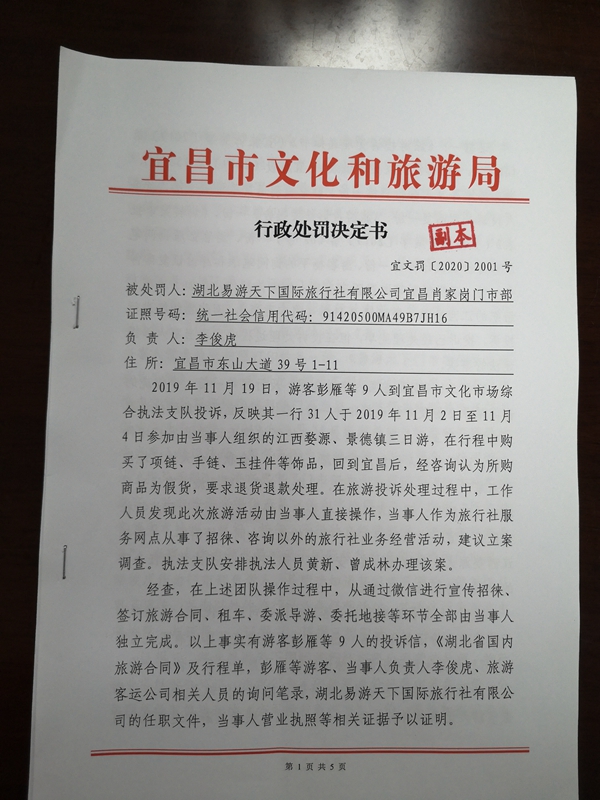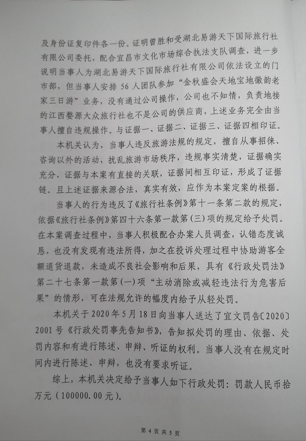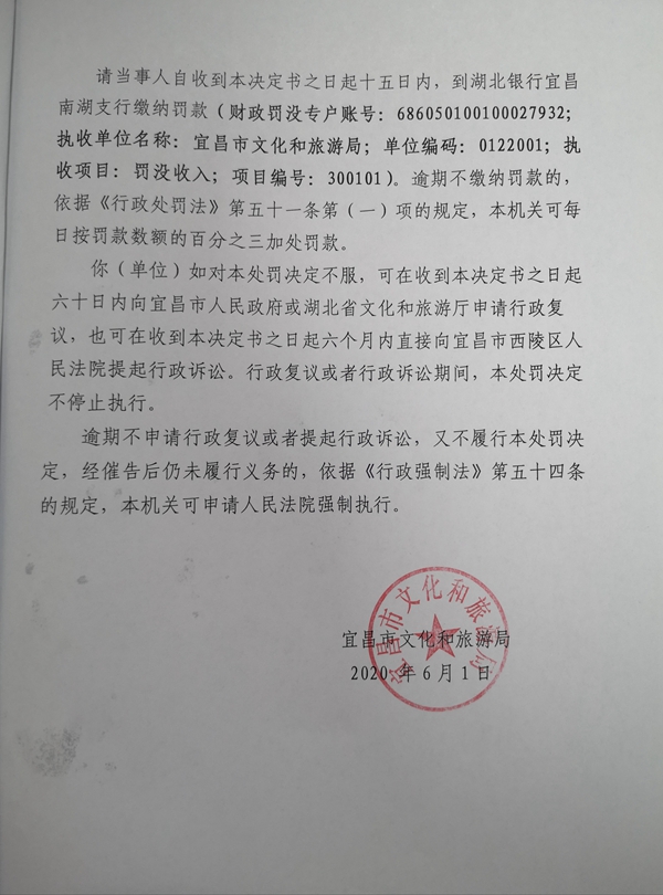 行政处罚决定书(宜文罚〔2020〕2001号)