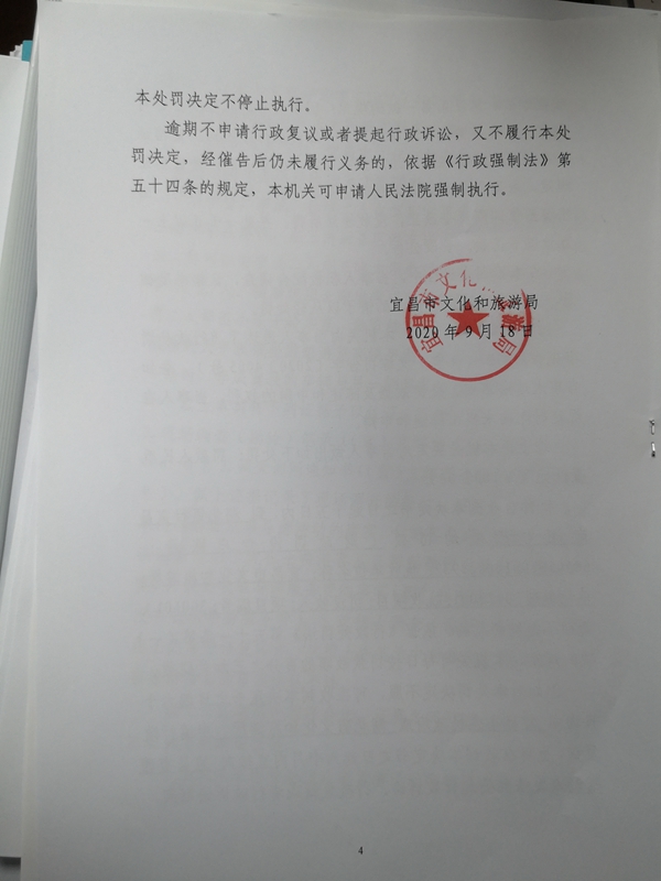 行政处罚决定书(宜文综罚字〔2020〕4005号)