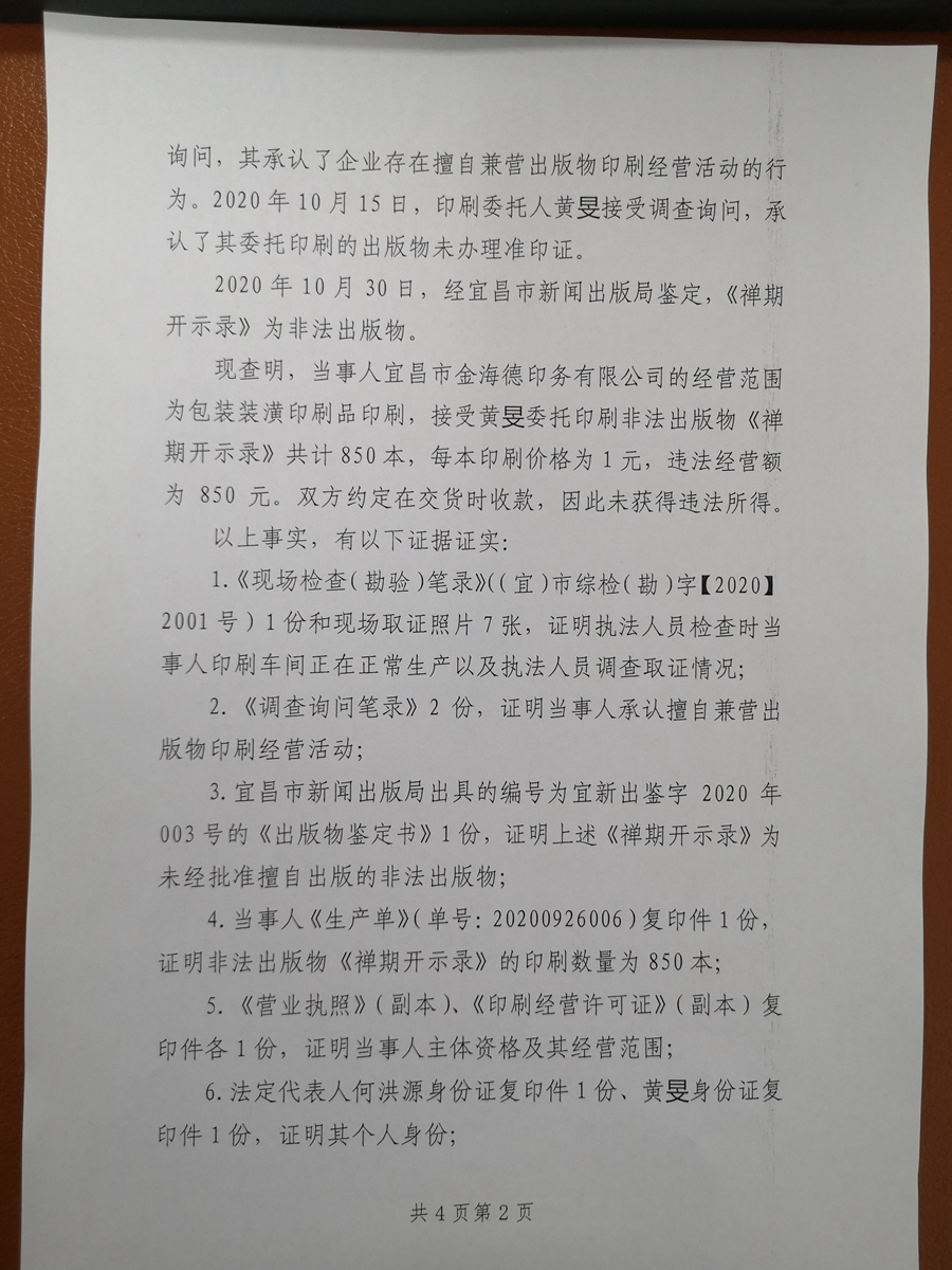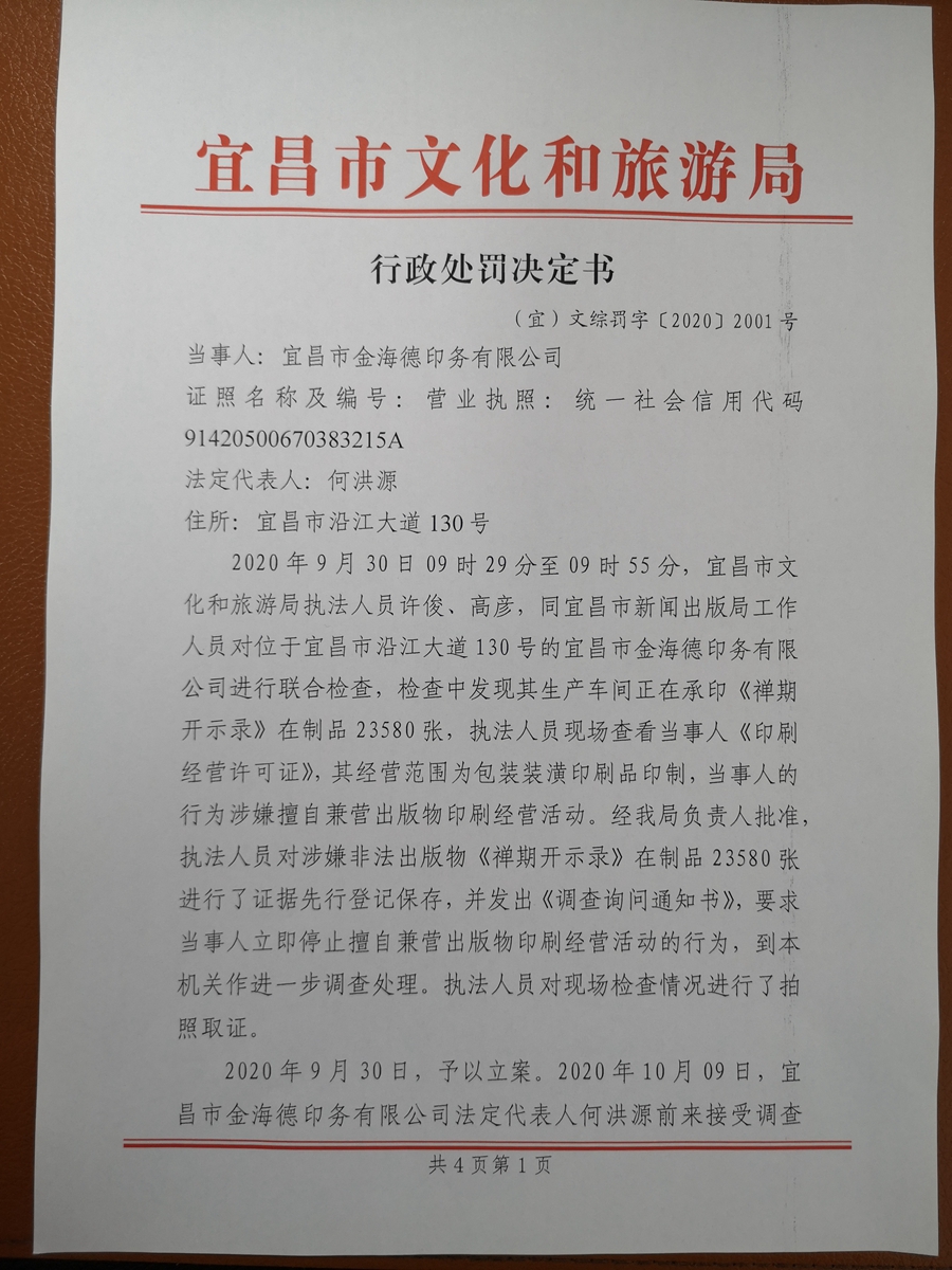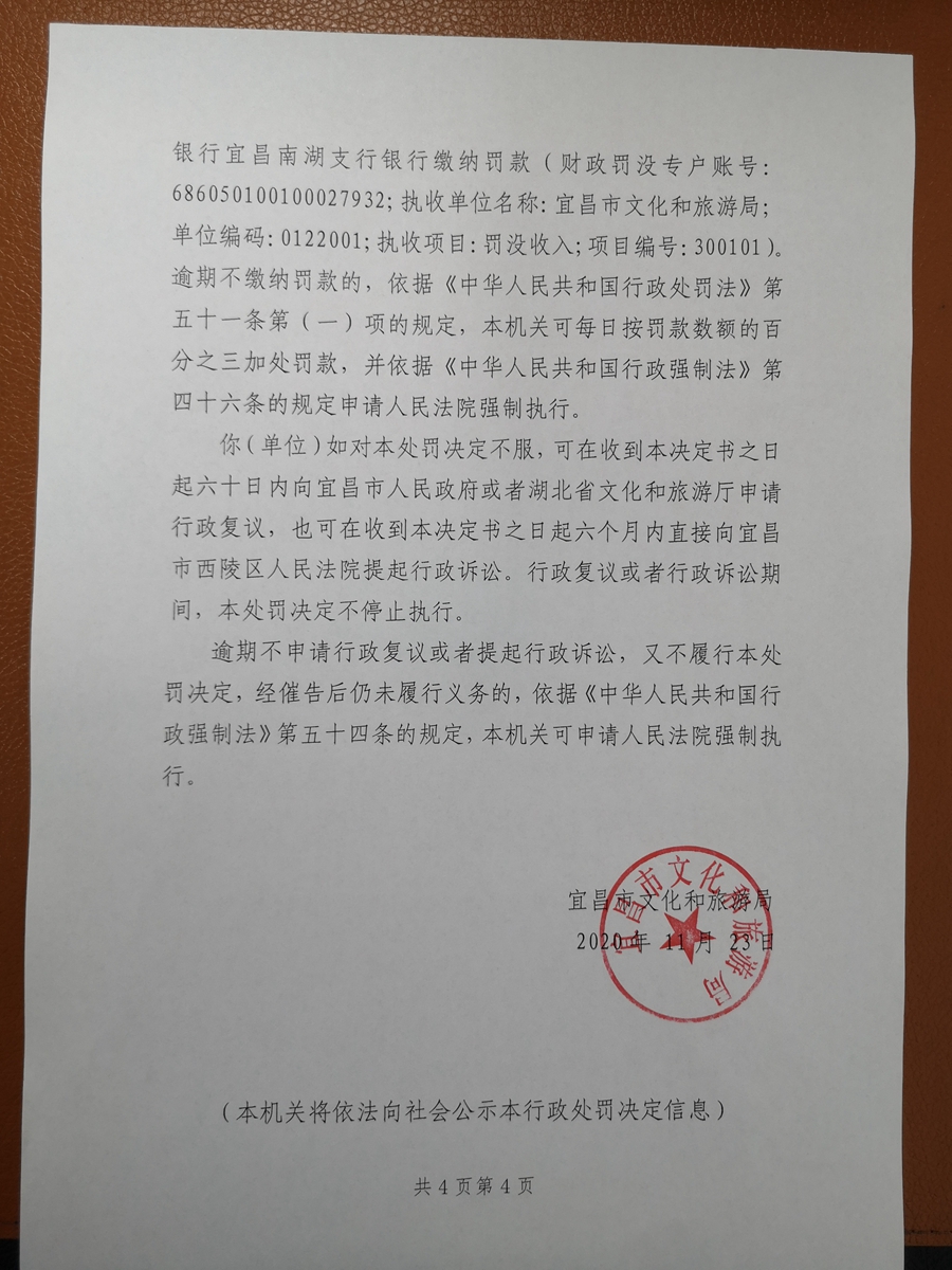 行政处罚决定书(宜文综罚字〔2020〕2001号)