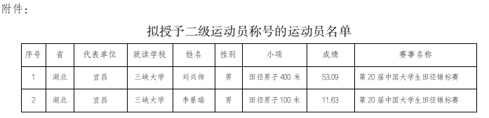 附件:拟授予二级运动员称号的运动员名单