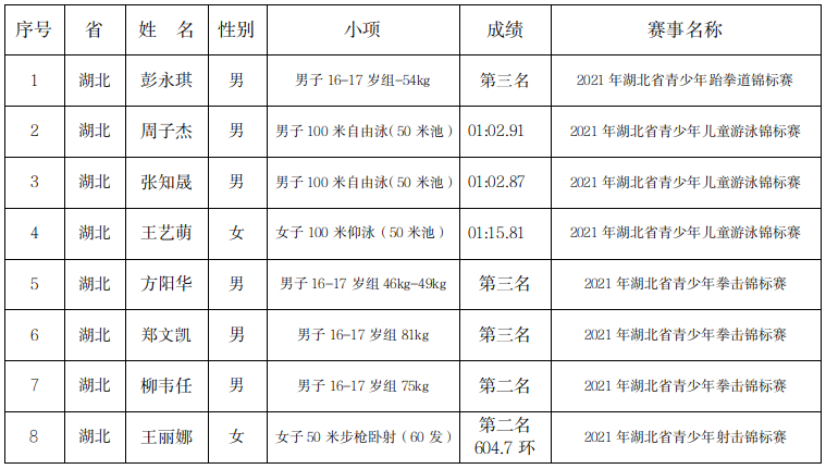 宜昌市文化和旅游局关于拟授予彭永琪等8人二级运动员称号进行公示的通知