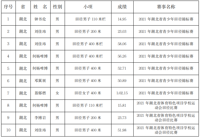 根据《运动员技术等级管理办法》的规定,经审核,现拟授予钟书伦等10人二级运动员称号。现按要求公示,公示期为2021年12月29日至2022年1月7日,公示名单见附件。