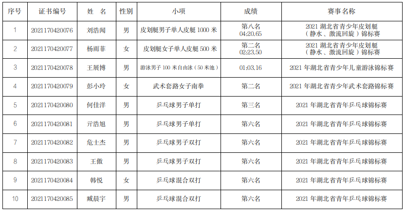 宜昌市文化和旅游局关于授予刘浩闻等10人二级运动员称号的通知(宜市文旅确〔2021〕16号)