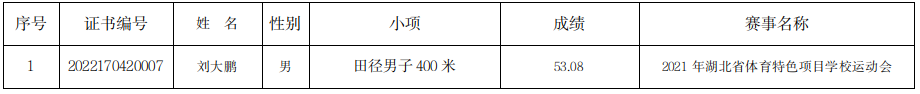 根据国家体育总局《运动员技术等级管理办法》、《运动员技术等级标准》,经审核,授予刘大鹏二级运动员技术等级称号。