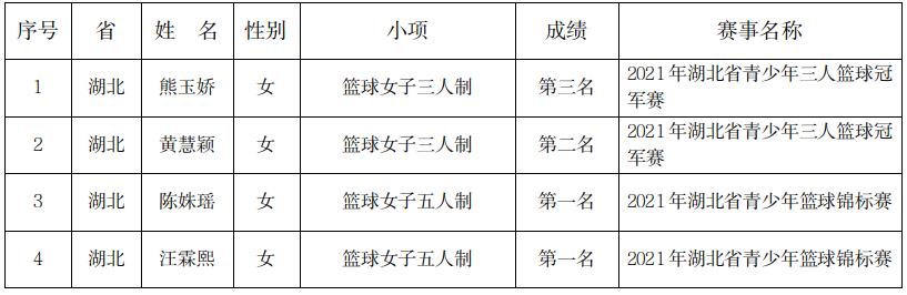 根据《运动员技术等级管理办法》的规定,经审核,现拟授予熊玉娇等4人二级运动员称号。现按要求公示,公示期为2022年4月27日至2022年5月9日,公示名单见附件。