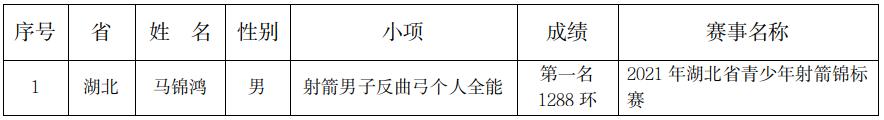 根据《运动员技术等级管理办法》的规定,经审核,现拟授予马锦鸿二级运动员称号。现按要求公示,公示期为2022年4月28日至2022年5月10日,公示名单见附件。