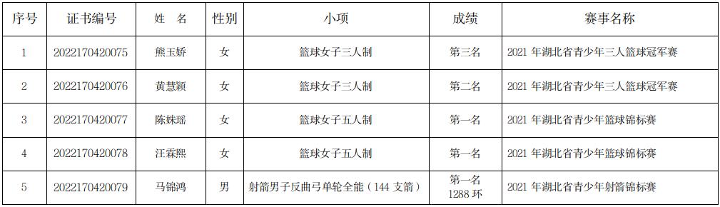 宜昌市文化和旅游局关于授予熊玉娇等5人二级运动员称号的通知(宜市文旅确〔2022〕12号)