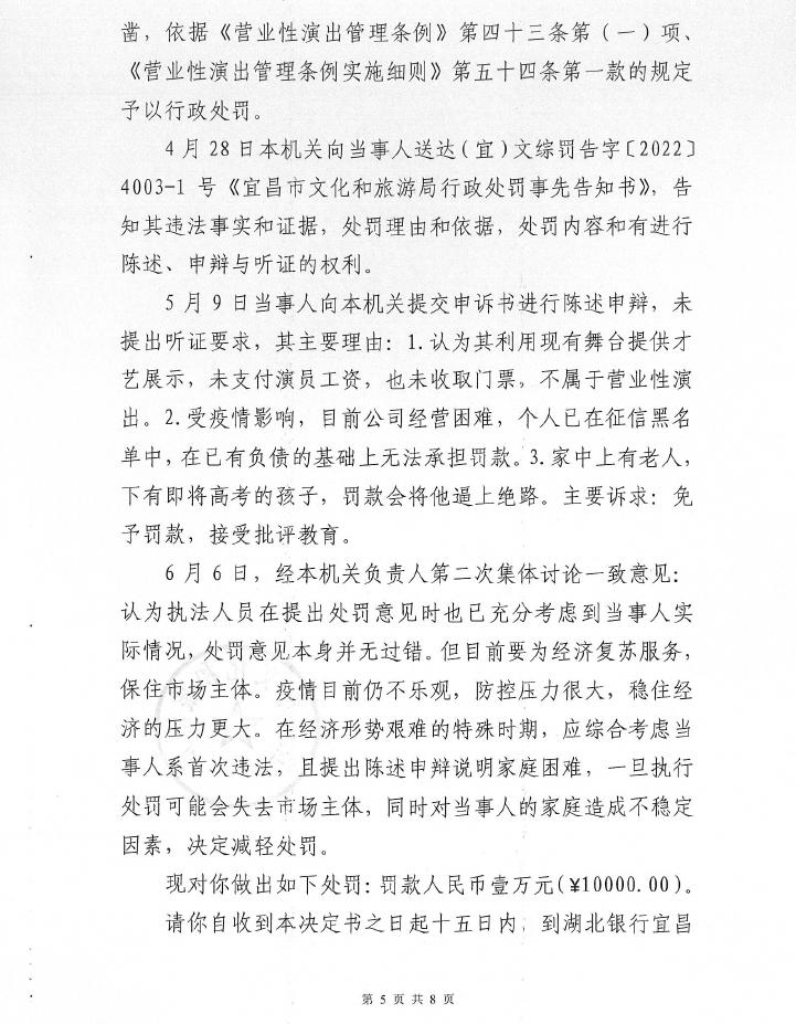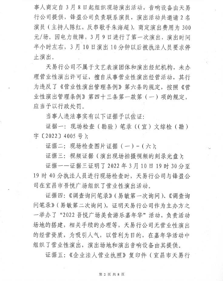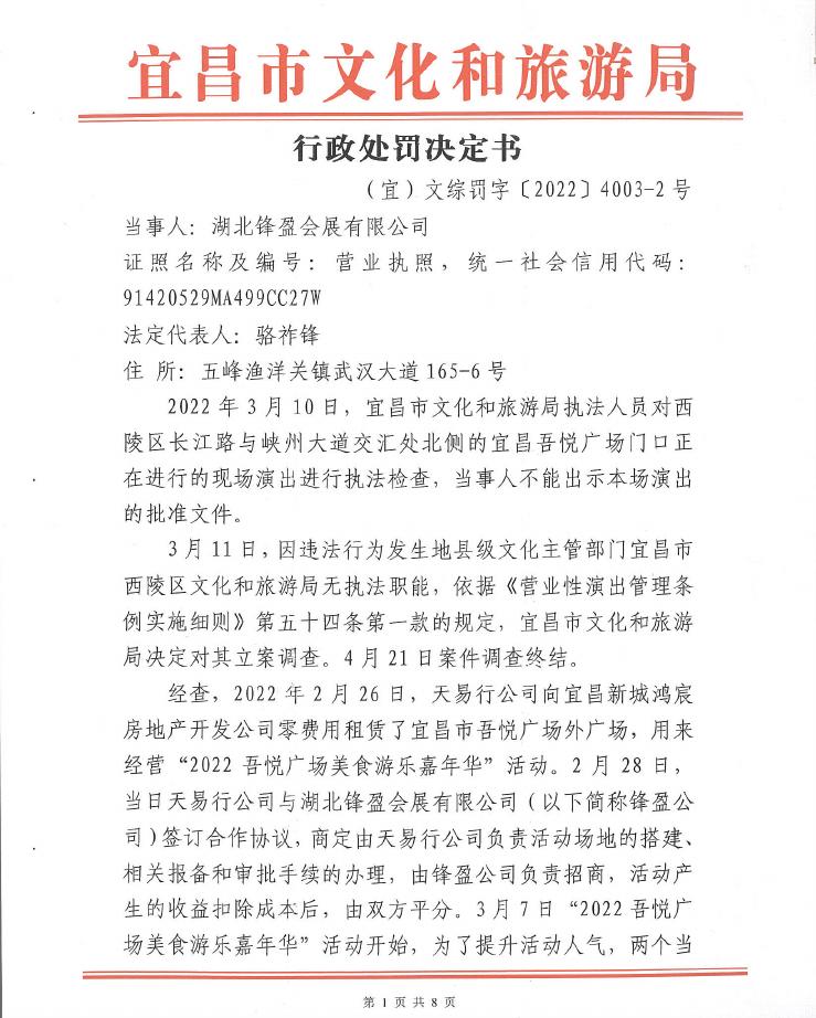 行政处罚决定书((宜)文综罚字〔2022〕4003-2号)