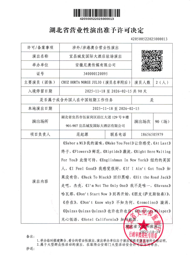 420500522025000013湖北省营业性演出准予许可决定